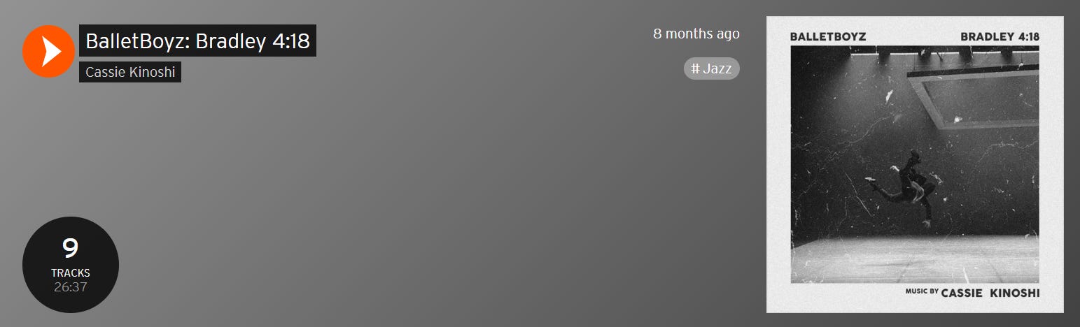 I saw a prescient tweet from Cassie Kinoshi during the week so it led me to checking out her music. She’s no newcomer I should say, with her SEED Ensemble receiving a Mercury nomination in 2019 for the album Driftglass. This particular set of music is her composition for Bradley 4:18, a dance performance inspired by the lyrics of Kae Tempest’s Pictures on a Screen. “I know it’s happenin’, but who’s it happenin’ to?” The song tells of Bradley, a PR dude who feels life is passing him by. I haven’t been able to see the performance, but the music is excellent, capturing the confusion and dread of monotonous existence. “I know I exist, but I don’t feel a thing”.